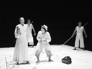如果说,有1000个观众,就有1000个哈姆雷特,那么,我们也可以说,有多少个戏剧导演,就有多少个版本的《赵氏孤儿》。如果说,今年春天由林兆华导演、濮存昕、徐帆等主演的北京人民艺术院的话剧版《赵氏孤儿》(4月上演,后因SARS停演)颠覆了该剧的传统主题,融入了当代的价值观,那么,此次在纽约上演的《赵氏孤儿》中文版则像是原来意义上的这出元杂剧,突出了忠义、豪侠、献身等中国传统美德。不过,演员唱得与传统的中国戏曲不大一样,在动作、表情等方面要更为夸张和自由。