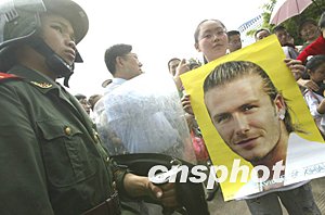 下午五时,皇马一行准时出现在了拓东体育场,这是他们首次在正式的足球场公开亮相进行训练,因而吸引了近三万名球迷前来现场观摩。