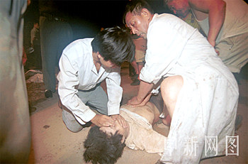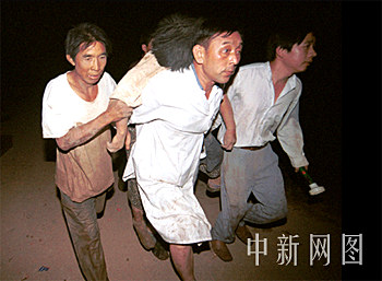 组图:医务人员抢救辛集爆炸烟花厂遇难者