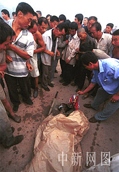 图:辛集爆炸烟花厂遇难者亲属辨认遗体