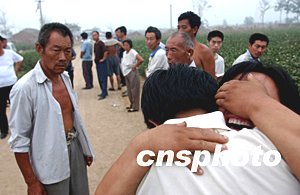 图:辛集爆炸烟花厂遇难者亲属辨认遗体