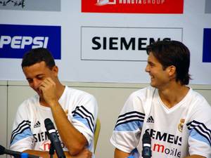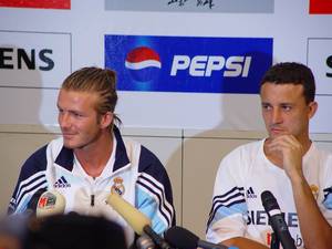 7月30日下午1时,皇马在红塔基地召开了第六天的例行新闻发布会,出席新闻发布会的皇马球员有贝克汉姆、索拉里、塞拉德斯、塞萨尔。新闻发布会上,贝克汉姆再次成为媒体追逐的焦点,其他球员则显得有些无所事事。图据云南日报网站