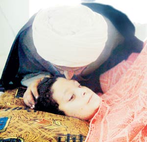 医院的人员给了纳克霍尔一个口罩和罩衣,然后领她进了一个病房,与这家医院其它病房的混乱场面相比,这间病房相当安静,里面一个妇女坐在一个低矮的床上,而床上一个小男孩儿躺一个肮脏的毯子上,身上罩了一个生了锈的金属笼子,头上包着厚厚的白绷带,他用大大的眼睛静静地看着那个妇女,令人心惊肉跳的是他的两只胳膊从肩膀处就没有了,下巴以下的身体躯干上有一块大大的伤疤,被烧成了黑木炭样。