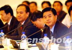 “粤港合作联席会议”第六次会议8月5日在香港礼宾府举行,香港代表团由行政长官董建华率领,粤方代表团团长则由广东省长黄华华担任。中新社记者:洪少葵