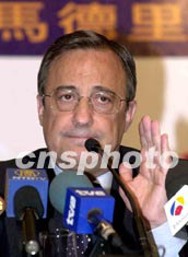 “皇马”主席佩雷斯7日在香港记者会上,就球员6日晚未能参加在大球场的操练,公开道歉,他解释问题出于缺乏沟通。中新社记者:邓庆乐