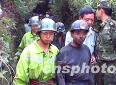 中国重庆沙坪坝区青木关镇燕湾煤矿八月七日十一时三十分,发生严重的透水事故,19名矿工被困井下,现已救出7人。目前当地政府正采取紧急措施,搜救另外12名被困井下的矿工。中新社 图