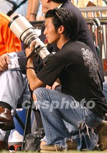 香港明星谢霆锋,八月八日在香港大球场观战西班牙劲旅皇家马德里对香港联队的比赛,并出动私伙长短炮,充当摄影师拍摄偶像。中新社记者:钱兴强