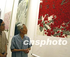 中国美术馆重新开馆半月以来,许多著名画家来此参观和交流。图为绘画大师吴冠中观看馆藏精品展。中新社记者:张勤