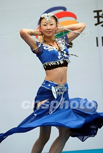 参赛模特表演印度舞蹈。中新社记者:盛佳鹏