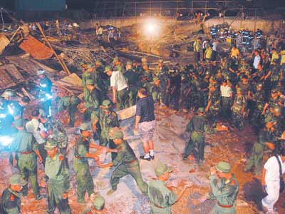 相关报道:厦门一公司厂房加盖突然发生倒塌 造成多人死伤 (2003-08-10 00:00:16)