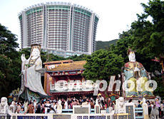 香港近日浅水湾景区一带游客增多,许多内地游客钟爱浅水湾的“三阳开泰”等吉祥雕塑,纷纷驻足观赏留影。作者:洪少葵