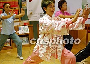 香港太极名家李晖,八月十一日在香港举行的首本著作《简易太极图书》发布会上,示范二十四式简易太极拳。中新社记者:钱兴强