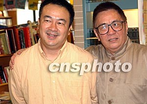 香港艺人黄沾、(右)高志森,八月十一日出席在香港举行的李晖《简易太极图书》发布会。中新社记者:钱兴强