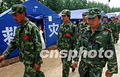 安徽省阜阳淮河行洪区的数万受灾百姓八月集中安置,军分区组织民兵在帐篷区巡逻,护卫高温天气中的父老乡亲生活安定。作者:阜军
