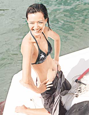 中新网8月13日电 昨日香港女星卢巧音(Candy)联同EO2成员Otto及Osman、Eric Kwok(前Swing乐队成员)组成Music Ranger队,在骤晴骤雨下参加“全运会——滑水比赛”,结果Candy大热胜出,以一比○赢了DJ队。