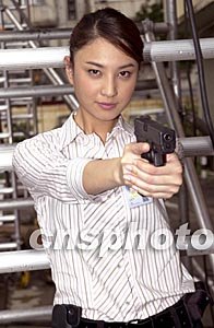 歌星郑希怡8月13日在香港出席港产电影《重案黐孖GUN》开镜拜神仪式。郑希怡在影片中饰演探员名叫冯宝宝,她并在仪式上持枪作势为影片宣传。