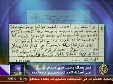 图:半岛台播出萨达姆亲笔信 呼吁发动圣战