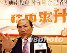 八月十四日,香港五大地产代理商会为救楼市向政府进言,建议务求楼市“稳中求升”。图为香港地产代理专业协会有限公司会长邓意民在记者会上畅所欲言。作者:潘索菲