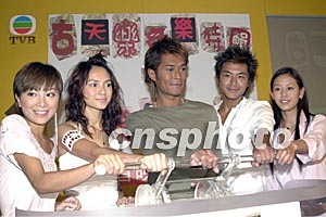 歌影红星古天乐8月14日在香港出席其音乐特备节目《古天乐音乐特辑之缘份咖啡室》首映礼,音乐特辑主角古天乐联同演出嘉宾利嘉儿、李心洁、萧正楠、梁靖琪(左起)携手主持首映仪式,音乐特辑将于16日晚于翡翠台播映。作者:邓庆乐