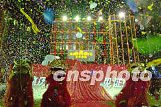 八月十五日凌晨,“青岛啤酒”迎来了百年华诞,正在举行纪念活动的青岛啤酒第一制造厂里一片欢腾。中新社记者:张炜