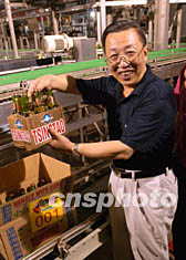 八月十四日子夜,青岛啤酒自诞生以来第一个一百年生产的最后一箱啤酒正式下线。青岛啤酒股份有限公司董事长李桂荣在生产线前见证这一重要时刻。青岛啤酒诞生于1903年8月15日。中新社记者:张炜