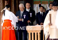 中新网8月15日电 据日本共同社报道,小泉内阁成员中的防灾担当相鸿池祥肇、农林水产相龟井善之、经济产业相平沼赳夫及国家公安委员会委员长谷垣祯一4人今天参拜了位于东京九段北的靖国神社。众议院议长绵贯民辅也进行了参拜。