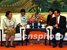 全国人大常委会委员长吴邦国十五日在北京会见泰国公主诗琳通。中新社记者:满会乔