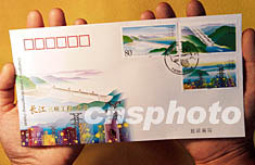 中国国家邮政局定于2003年8月20日发行《长江三峡工程·发电》特种邮票1套3枚,三枚邮票的名称分别为:水库蓄水、船闸通航、电站发电。为配合这套邮票的发行,北京市邮票公司特设计印制了此套邮票的首日封(图),与邮票同日发行。中新社记者:邹宪