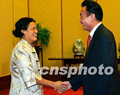 中国全国人大常委会委员长吴邦国十五日在人民大会堂会见了来访的泰国公主诗琳通。