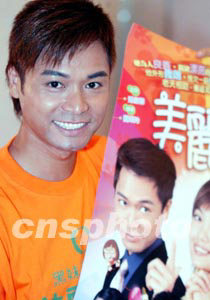 香港无线电视小生郭晋安向观众赠送剧目海报。