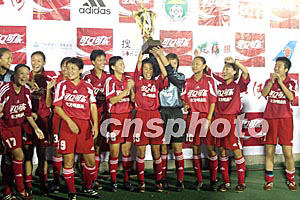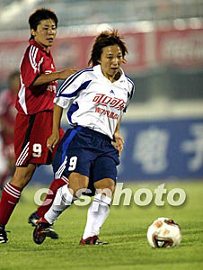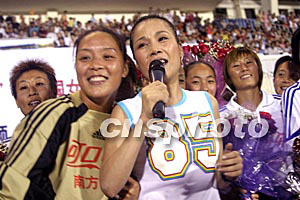 2003中国女足南北明星争霸赛八月十七日晚在北京先农坛体育场进行,经过八十分钟的全场较量,最终北方队凭借韩端的帽子戏法最终以4:1战胜南方队获得本届中国女足南北明星争霸赛的冠军。中新社记者:盛佳鹏