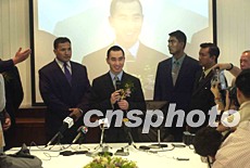 「新濠国际」董事总经理何猷龙在澳门区总部成立仪式上举行记者会,回答媒体提问。中新社记者李刚