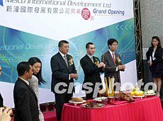 「新濠国际」澳门区总部十九日在澳门成立,澳门特区行政长官何厚铧、全国政协副主席马万祺、中央驻澳门联络办副主任李勇武、外交部驻澳副特派员吴鸿波等出席成立仪式并为新公司剪彩。中新社记者:李刚