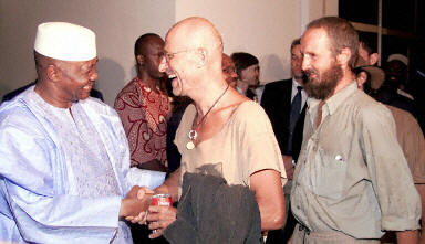 8月19日,马里总统杜尔(左一)在巴马科接见获释的欧洲人质。