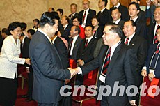 全国政协主席贾庆林二十一日在北京人民大会堂会见以余国春为团长的香港广东社团总会访京团。中新社记者:毛建军