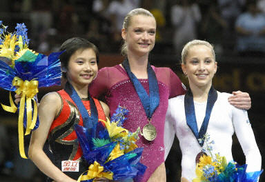 这两名十七岁的小将不负重望,特别是中国女队领军选手张楠状态明显回升,第一项平衡木得了今晚全场最高分九点七分,在自由体操比赛中也稳定发挥。不过由于她跳马相对较弱,高低杠又出现屈腿的小失误,只得九点二六二分,最后以三十七点六二四分夺得铜牌。这是迄今中国选手在世锦赛女子全能项目上的最佳战绩。