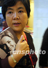 中国妇女全国代表二十三在北京进行分组讨论,一位代表购买了美国前总统克林顿夫人希拉里的自传《亲历历史》。中新社记者:廖文静