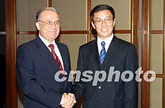 二十三日,上海市市长韩正在上海会见罗马尼亚总统扬·伊利埃斯库一行。作者:汤彦俊
