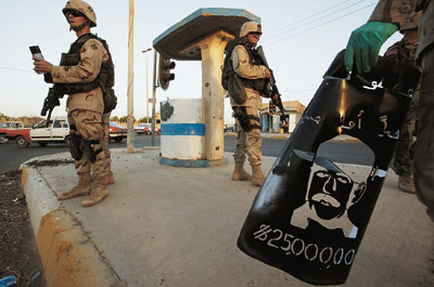 也就是在一个半月前,其时美军已经正式开始追捕时,又有人在巴格达城发现了他的踪影。当时巴格达已经是相当危险:盟军在进行不间断搜查、机动车辆随时都可都被挡截,大街上三步一哨,五步一岗,戒备森严。萨达姆想冒险通过老的走私通道潜入北方,毕竟那里的亲朋好友会多一些。