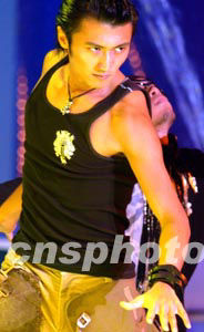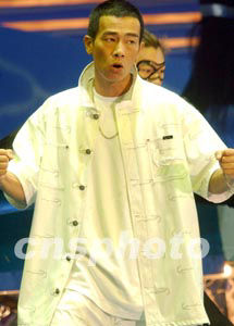 香港歌星谢霆锋 ,在二十三日晚红(石+勘)香港体育馆举行的2003年度香港小姐竞选决赛上演唱 。 中新社记者:钱兴强