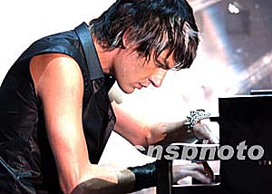 来自克罗地亚的著名钢琴家MAKSIM,二十三日晚在香港红(石+勘)香港体育馆举行的2003年度香港小姐竞选决赛上演奏。 中新社记者:钱兴强