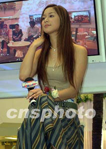 香港演艺明星徐子淇二十四日出席一新闻发布会时,身穿低胸紧身衣,性感十足。作者:谭达明