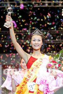 2003年中国南昌新丝路模特大赛二十三日晚在南昌市红谷滩行政广场举行,六十名男女选手在T台上展示青春靓丽风采。来自当地的十九岁选手肖娇获得冠军。中新社记者:毛建军