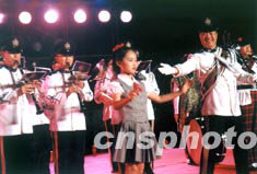 二十三日晚,参加福建·香港周活动的香港警察乐队在福州演出时,特邀福州小朋友担任乐队指挥。作者:陈勇