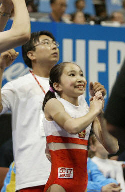 图:中国小将范晔世锦赛平衡木比赛中称后