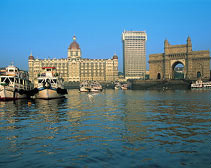 图为孟买著名的景点印度门(右),距今日(8月25日)连环爆炸事件中其中一枚炸弹的爆炸地点不远.(章田)