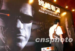 八月二十六日晚,投资一点七五亿美元的美国大片《终结者3》在北京举行首映礼。这是华夏电影发行有限责任公司成立以来引进的首部大片。中新社记者:武仲林