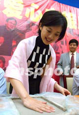 “太阳星城”爱心之旅大型公益活动二十八日从北京人民大会堂正式启程,电视节目主持人许戈辉在启程仪式上按下象征爱心与弱者牵手的手印。该公益活动计划在中国五十多各城市采访调研残障人士、下岗职工等弱势群体的生存状况。中新社记者:张炜