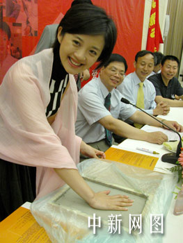 作为“爱心使者”的香港凤凰卫视知名节目女主持人许戈辉,今天在爱心之旅的壮行仪式上,被推举第一个按下象征着爱心与弱者牵手的手印。此行活动将采集100个贫困的受助人、100个爱心使者的手印,并用以制作一座“爱心牵手墙”,褒奖爱心人士,传扬中华民族互爱互助的美德。
