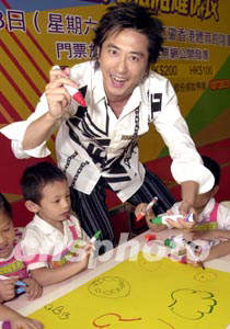 庾澄庆与保良局儿童绘画心意咭。中新社记者:邓庆乐